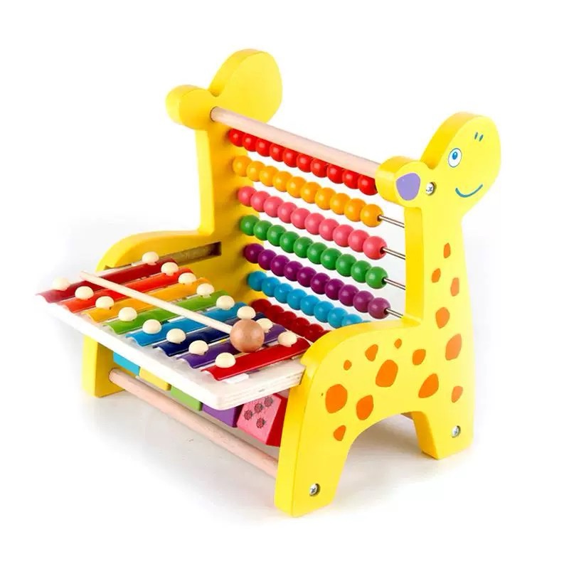 Fabricata din lemn de foarte buna calitate (atat lateralele in forma de girafa, cat si bilele), colorata frumos cu vopsea non-toxica, aceasta jucarie este educativa prin cele 3 activitati pe care le ofera copiilor: