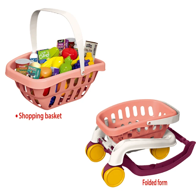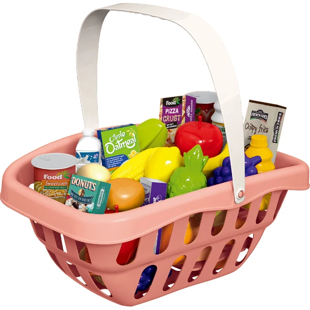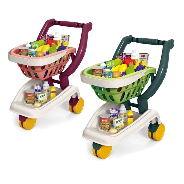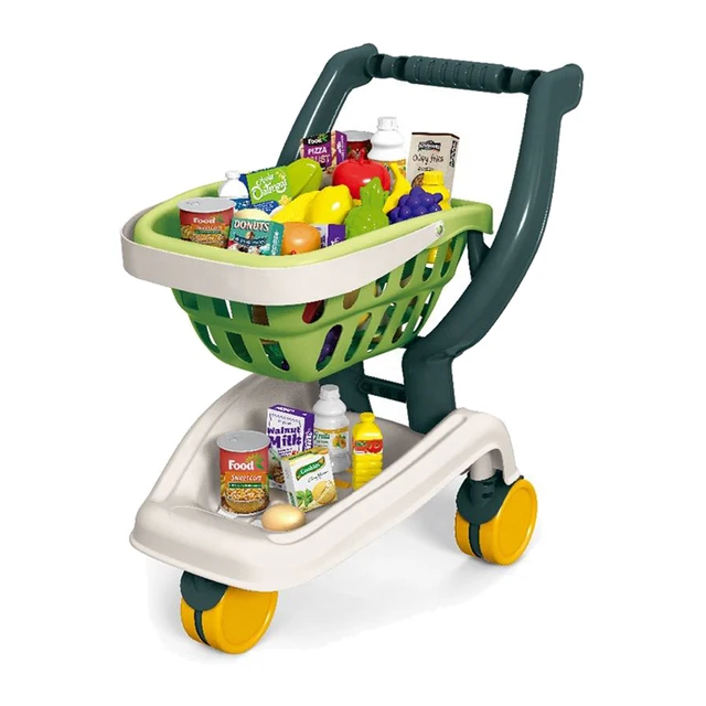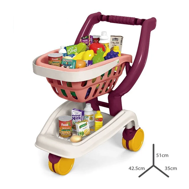 Cărucior supermarket pentru copii. Căruciorul de supermarket arată foarte realist și interesant pentru aproape fiecare copil. Echipat cu un coș încăpător și un set de produse pentru un joc captivant. Sub coș există o nișă suplimentară pentru jucării mici. Sunt 35 de articole în total. Dimensiune cărucior: 42.5-35-51cm Dimensiune pachet: 33-44-23cm