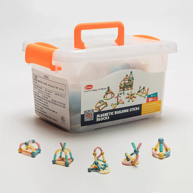 Constructor Magnetic Building Sticks Blocks în Caserolă Onshine 61 pcs