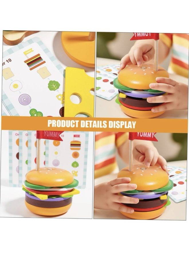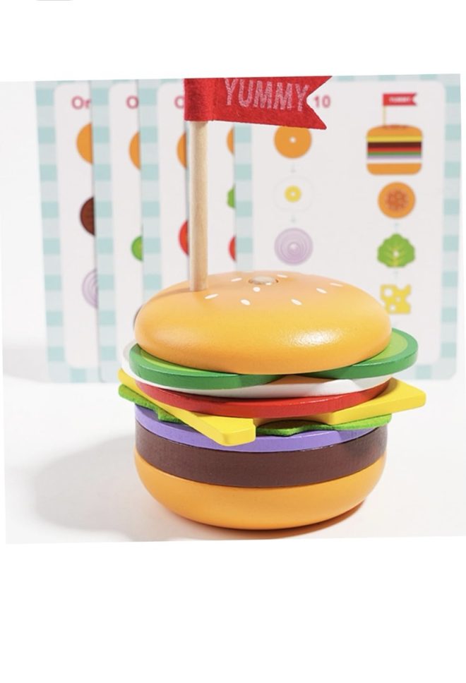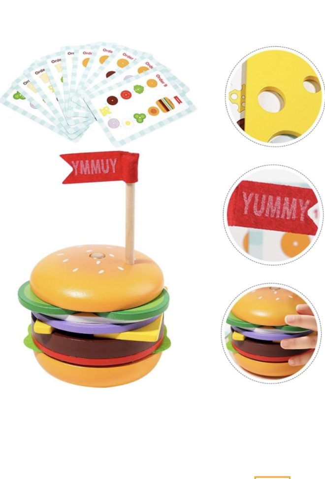 Setul de hamburger din lemn va fi o jucarie tare indragita de copilul tau. Setul contine ingrediente din lemn pentru prepararea unui hamburger. Daca micutul tau esta pasionat de arta culinara, si se invarte in jurul tau cand pregatesti mancarea, acesta e cadoul perfect.