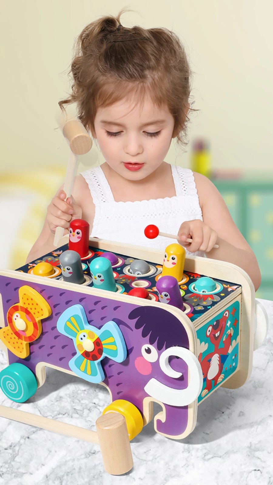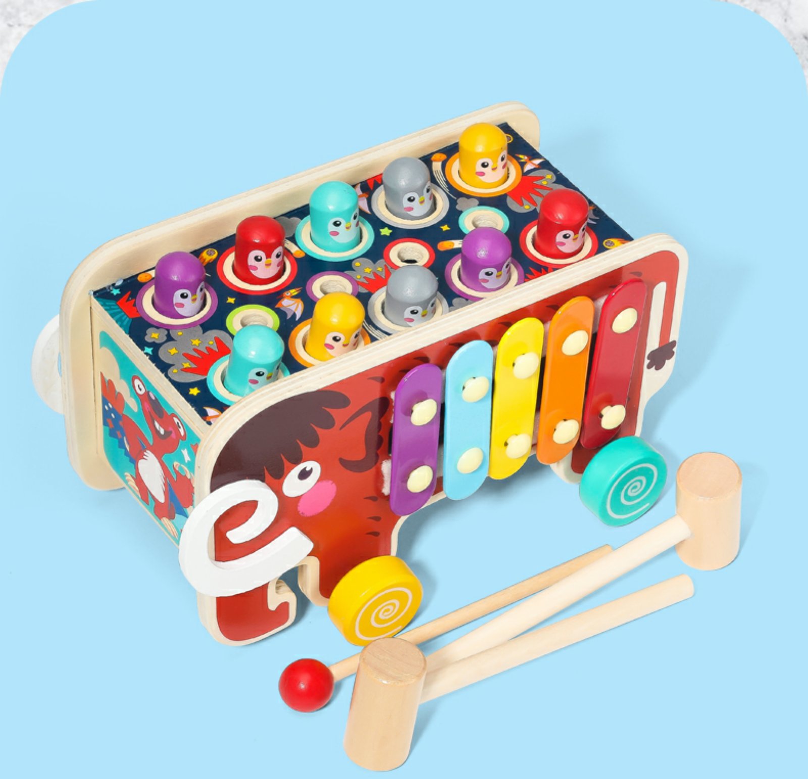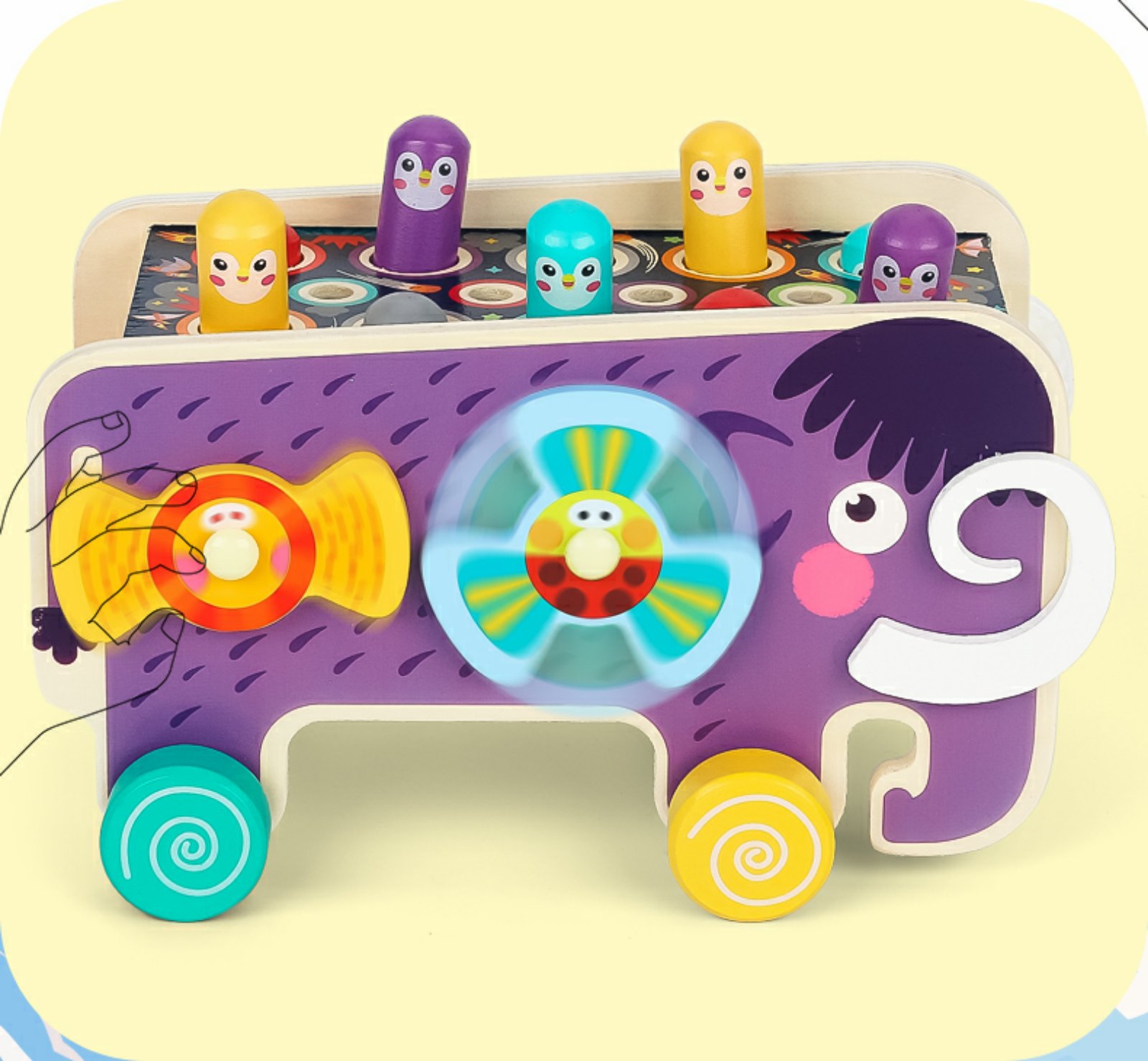 Jucaria multifunctionala cu ciocanele dezvolta motriticitatea si coordonarea ochi-mana.
