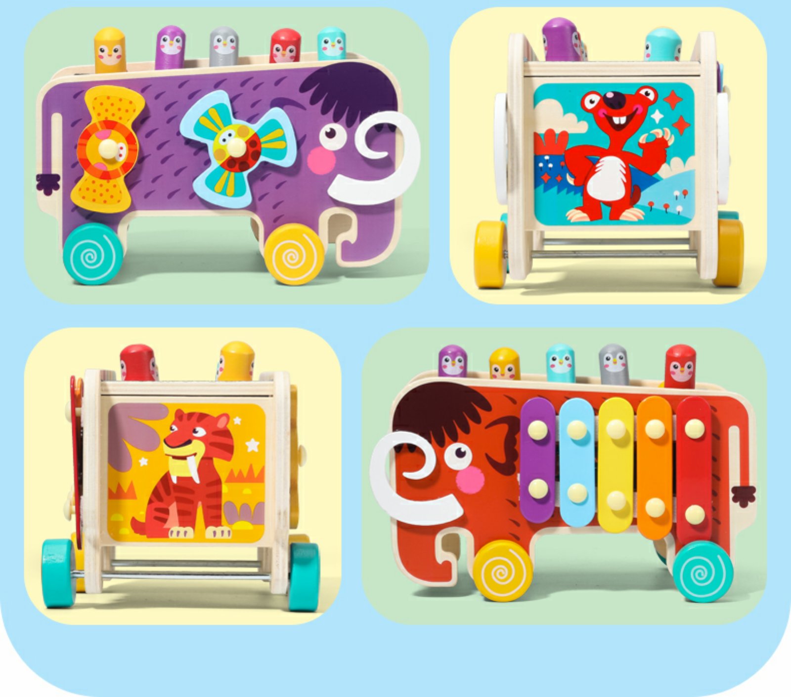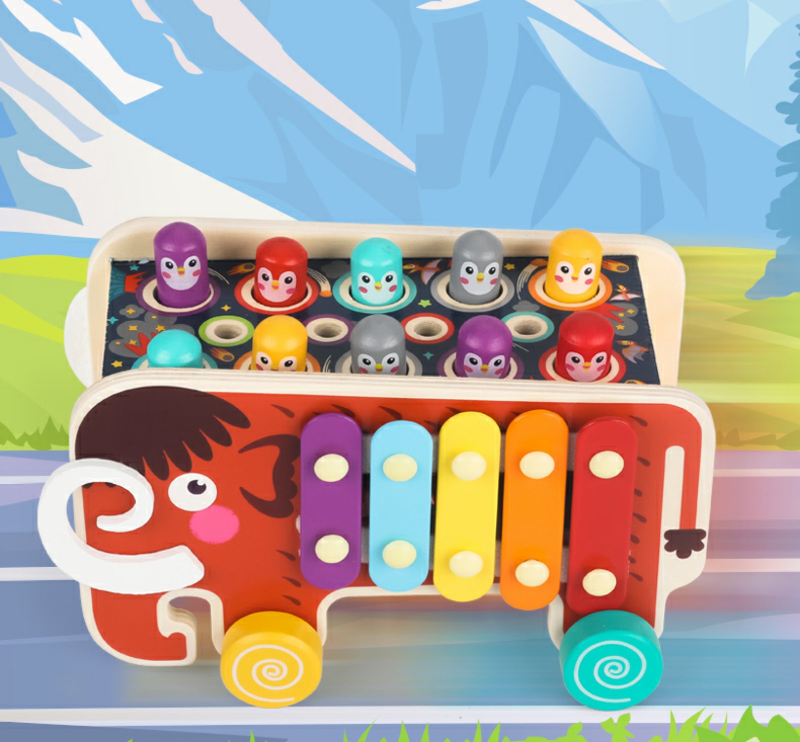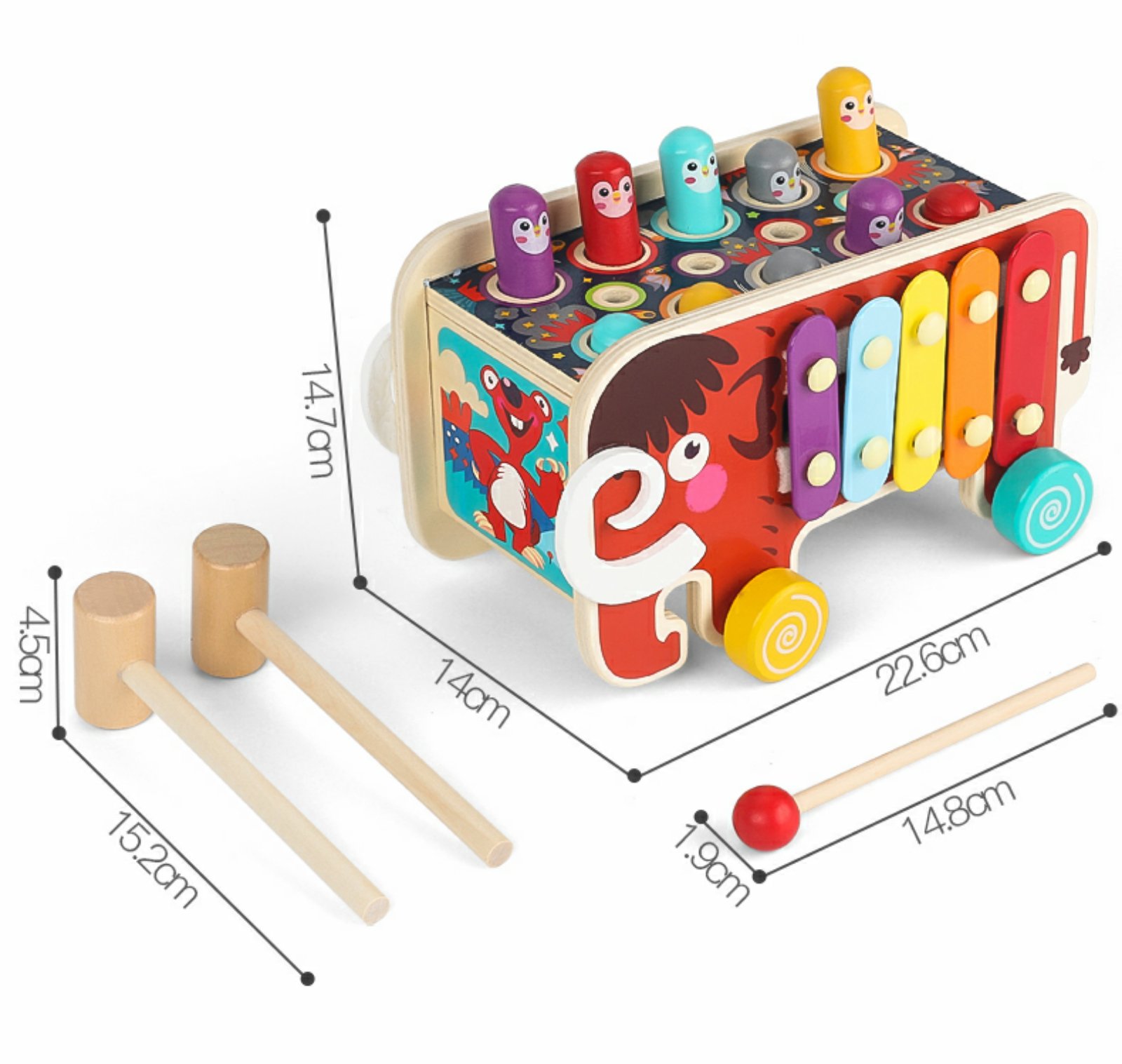 Jucaria multifunctionala cu ciocanele dezvolta motriticitatea si coordonarea ochi-mana.
