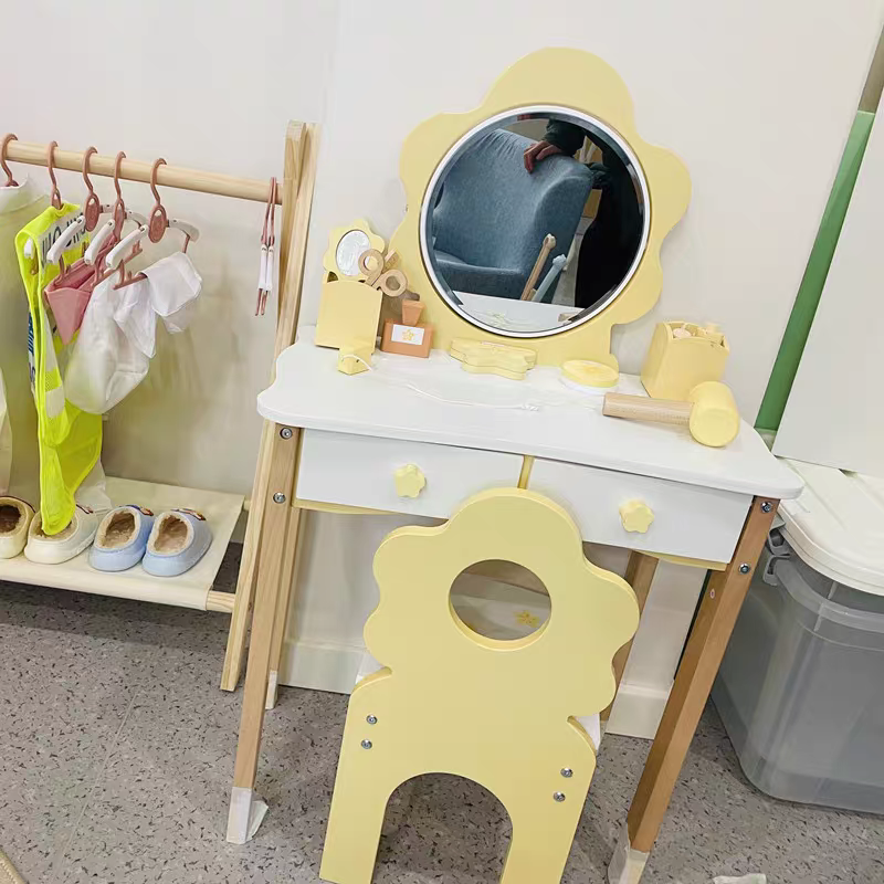 Casuță pentru păpuși din lemn cu accesorii în 2 nivele.