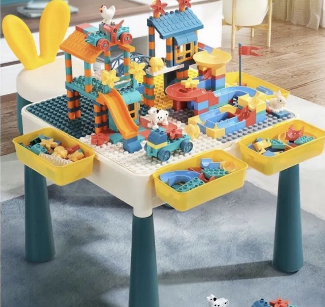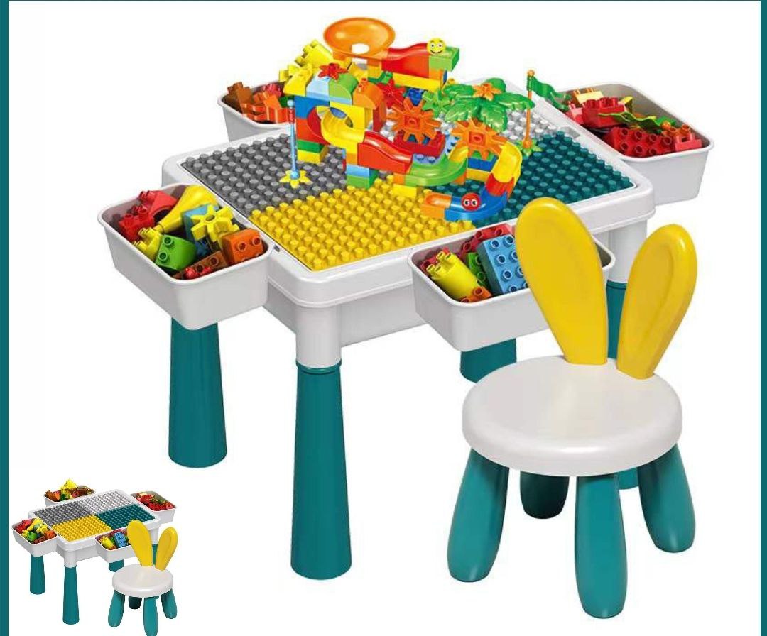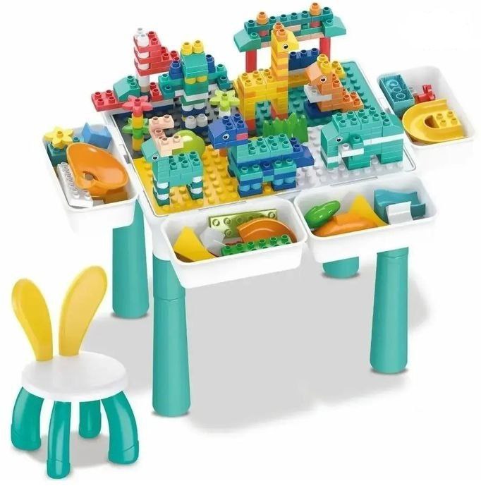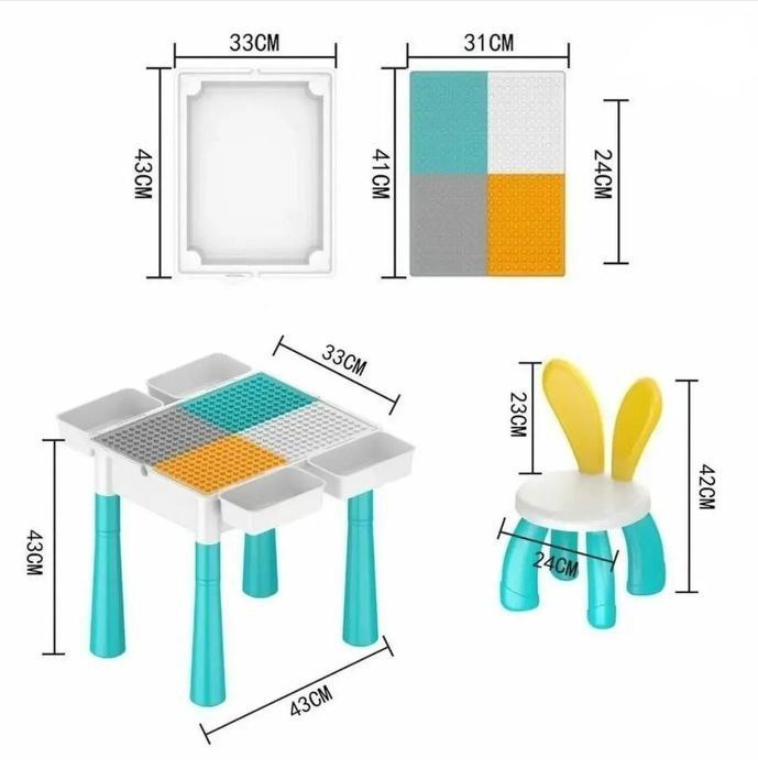 Masa și scaunul pentru construcții sunt produse moderne și comode pentru dezvoltarea copiilor în vârstă preșcolară. Setul 3 în 1 include o masă pentru copii, un scaun și 105 piese de construcție compatibile perfect cu piesele Lego. Masa transformabilă se deschide datorită capacului detașabil, care are două suprafețe: una cu plăci mari, iubite de toți copiii, compatibile cu Lego Duplo – baze pentru construcții, iar cealaltă este plană și potrivită pentru desen și alte jocuri. În interiorul mesei există un spațiu de depozitare pentru piesele de construcție incluse în set. Utilizați cavitatea ca loc comod pentru jocuri cu apă sau ca nisip kinetic, deoarece materialele nu se vor risipi. Masa are buzunare exterioare pentru depozitarea jucăriilor, pieselor de construcție, articolelor de papetărie sau altor mici obiecte. Folosiți masa pentru jocuri, învățare, desen, construcții și alte activități cu copiii. Setul de jucării pentru copii este fabricat din plastic durabil. Dimensiunile mesei: 41x32x32 cm. Dimensiunile scaunului pentru copii: 38x21x21 cm. Mobilierul pentru copii se potrivește perfect în orice interior de apartament, masa și scaunul pentru cei mici pot fi plasați în camera de copii, dormitor sau chiar în bucătărie, iar copilul dvs. se va bucura să petreacă timpul în timp ce sunteți ocupat(ă) cu treburile. Va fi un cadou ideal atât pentru băieți, cât și pentru fete, de Crăciun, 8 Martie, ziua de naștere sau 1 septembrie. În magazinul nostru, puteți achiziționa jucării pentru copii la prețuri avantajoase.