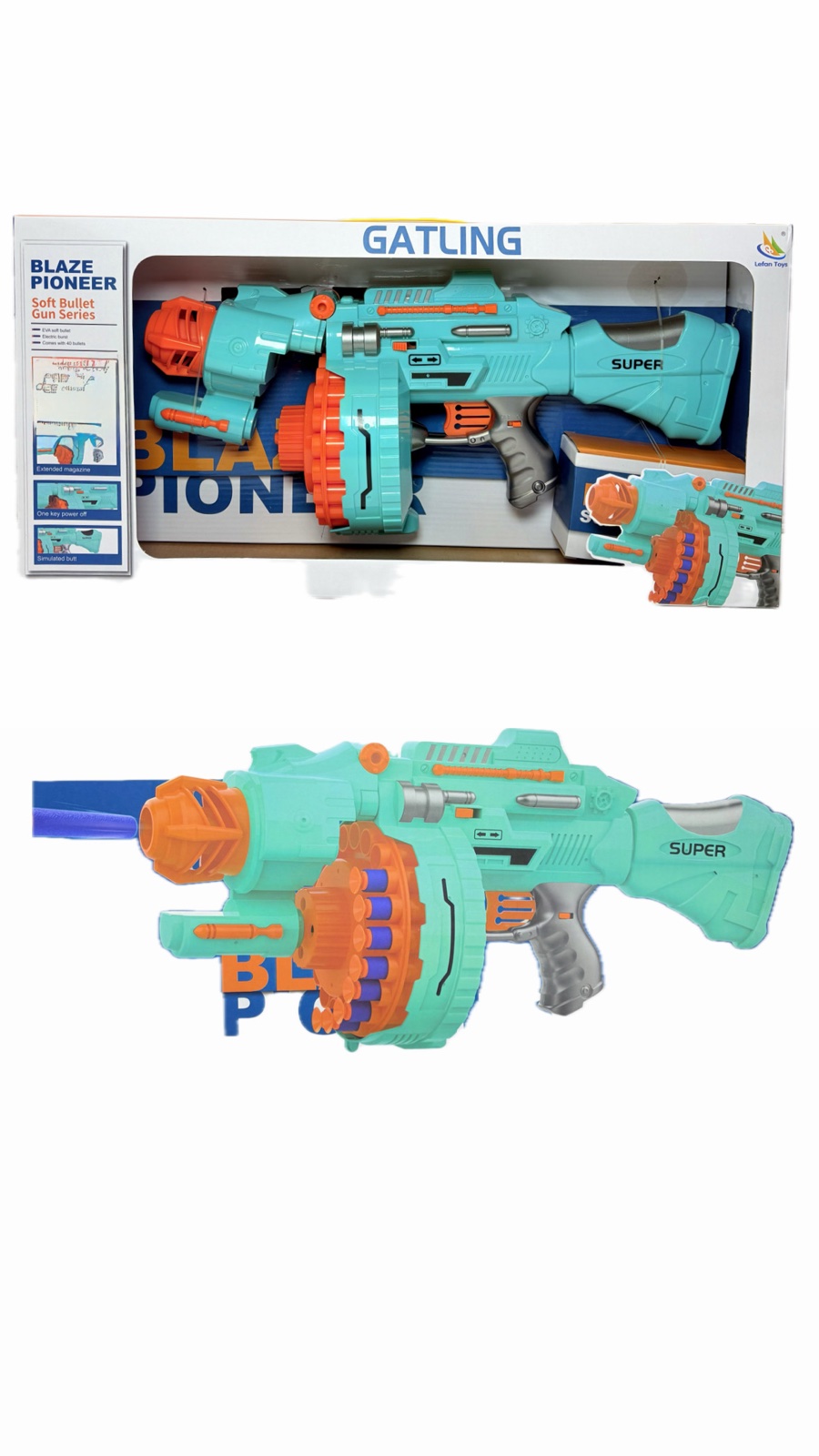 Transforma fiecare joaca intr-o misiune palpitanta cu acest pistol automat rotativ FEFA Power Ring, o jucarie interactiva cu design modern, potrivita pentru micii aventurieri! Datorita functiei de tragere in serie si incarcatorului rotativ de mare capacitate, copiii se pot bucura de actiune non-stop si distractie garantata in deplina siguranta.