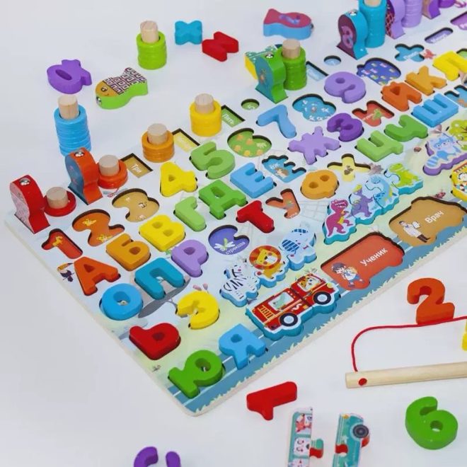 Cu acest joc din lemn, sortator de culori, copiii pot capata abilitati de numar timpuriu, crearea de tipare, rezolvarea problemelor, procesarea vizuala, invatarea culorilor si formelor, dexteritate in manuirea uneltelor pentru prins si ridicat.Gradinița