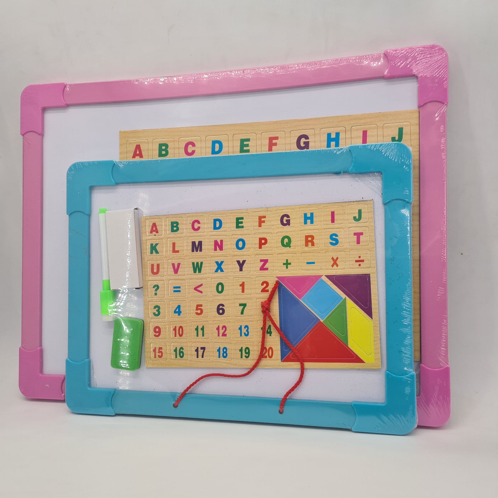 – 1 fata alba si magnetica, cu litere si cifre din lemn;