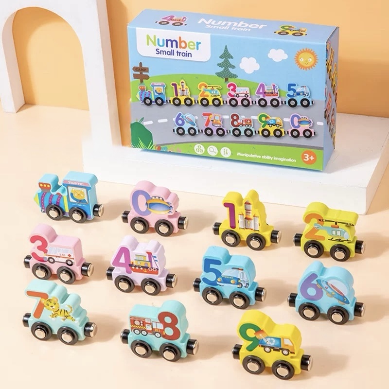 Tren Magnetic din Lemn Cifre cu Fructe/Animale/Transport/Dinozauri