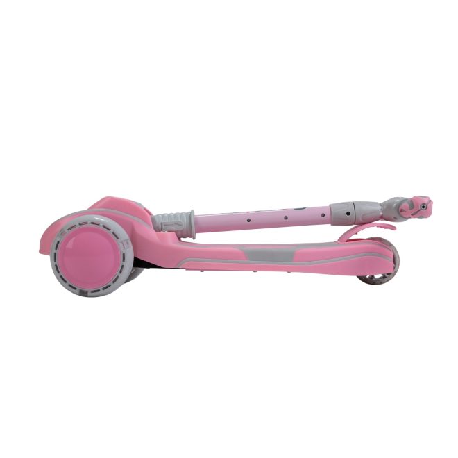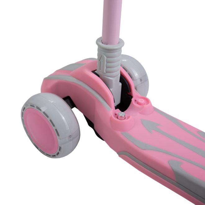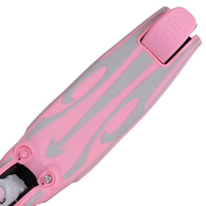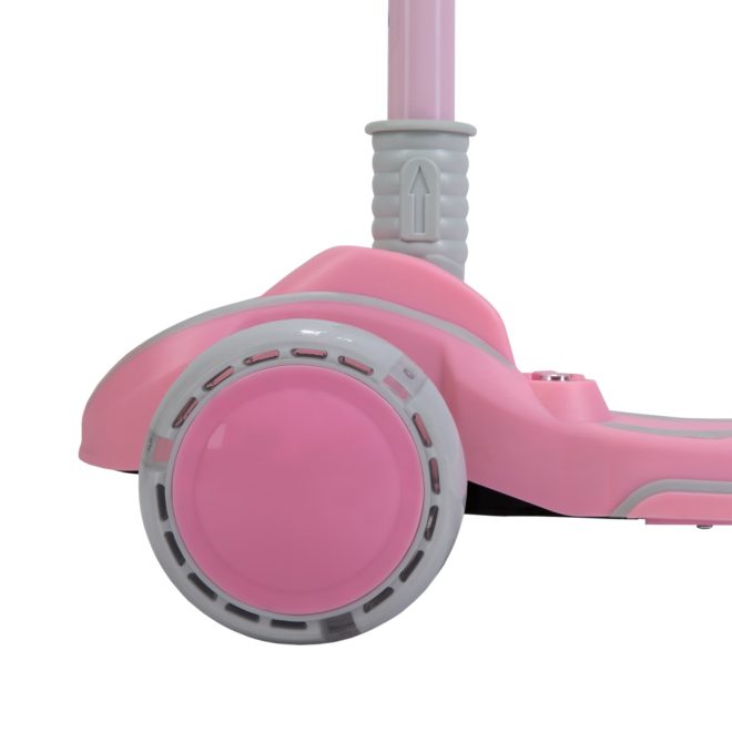 Este prevazuta cu 3 roti din silicon cu ajutorul carora trotineta ruleaza silentios;