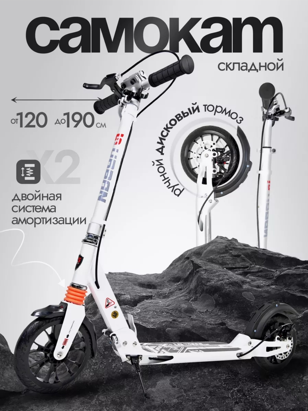 Trotineta pliabila cu dublu amortizare Urban Scooter, negru/alb